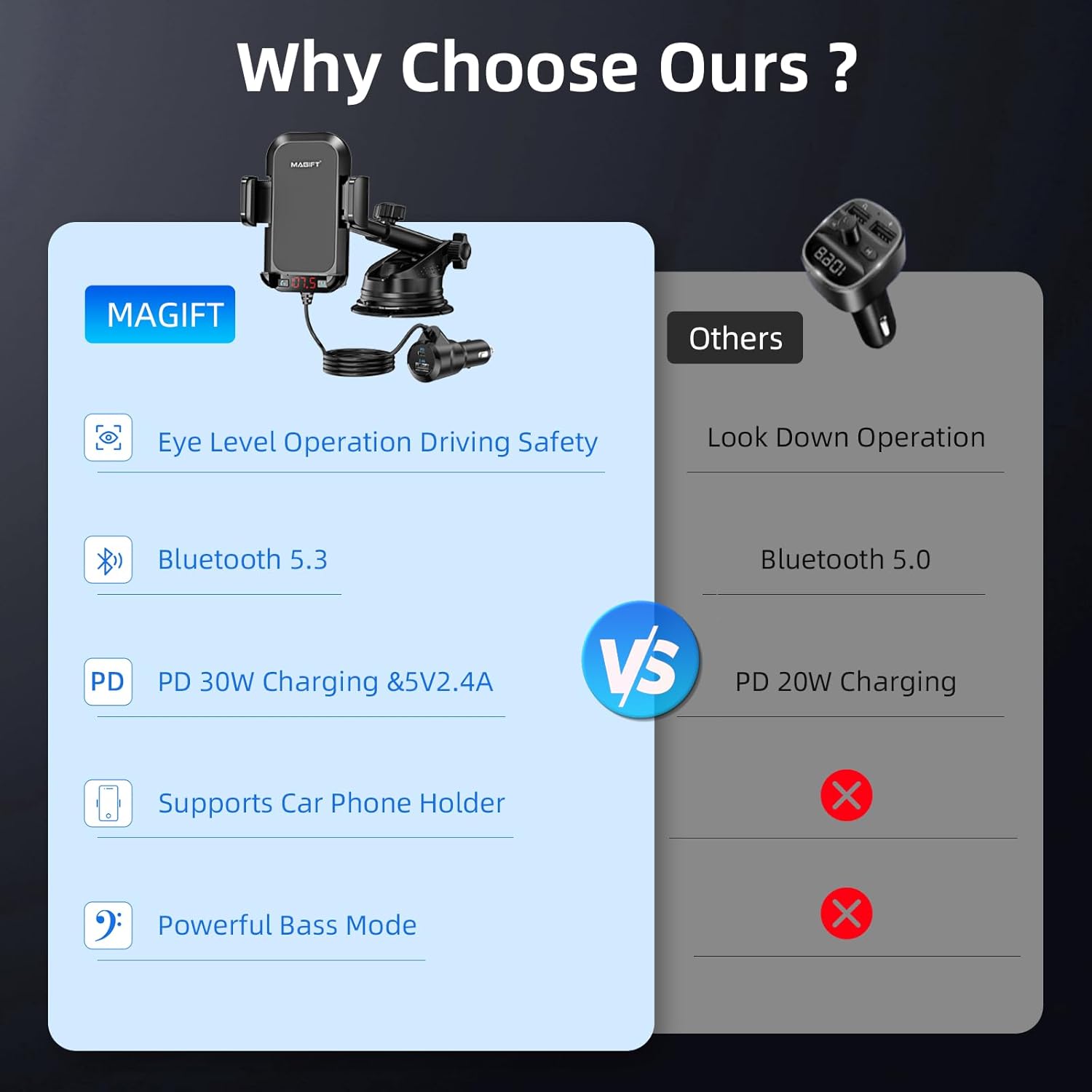 Introducing the 54W Bluetooth 5.3 FM Transmitter Car Adapter with Phone Holder 3-in-1, the ultimate solution for hands-free calling and music streaming in your car. This innovative device features HiFi bass sound quality, allowing you to enjoy crystal-clear audio while on the go.