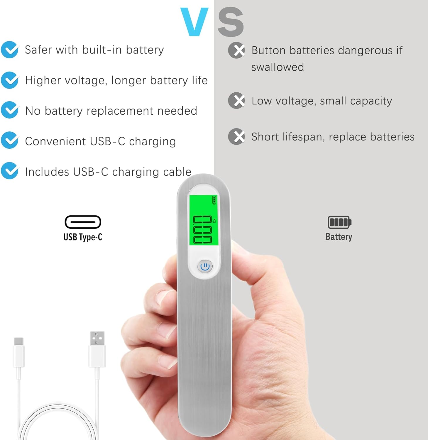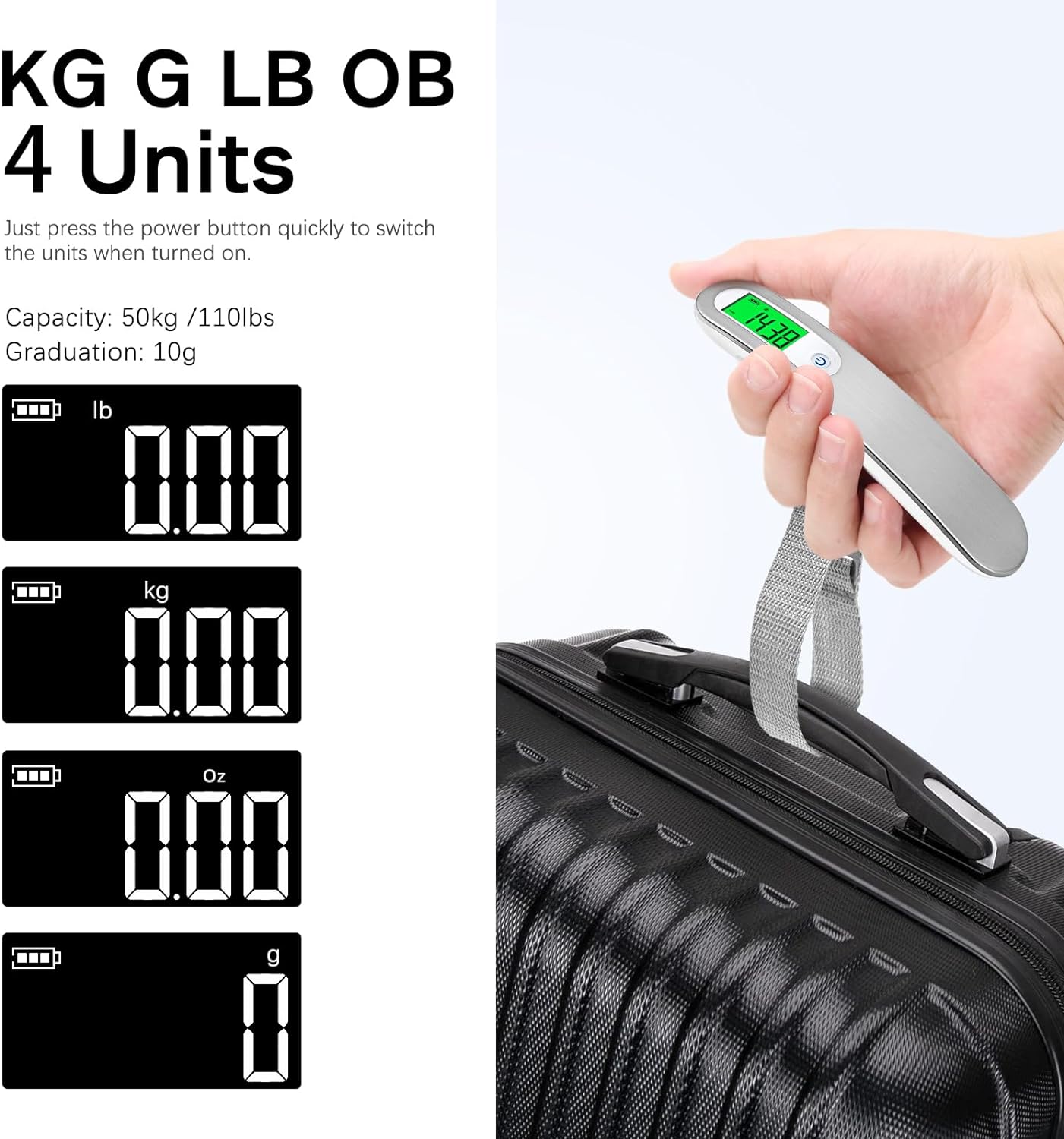 The built-in strap makes it easy to secure your luggage to the scale, while the convenient Type-C port allows for quick and easy recharging. Never be caught off guard by excess baggage fees again with the FEBHBRQ Rechargeable Luggage Scale.