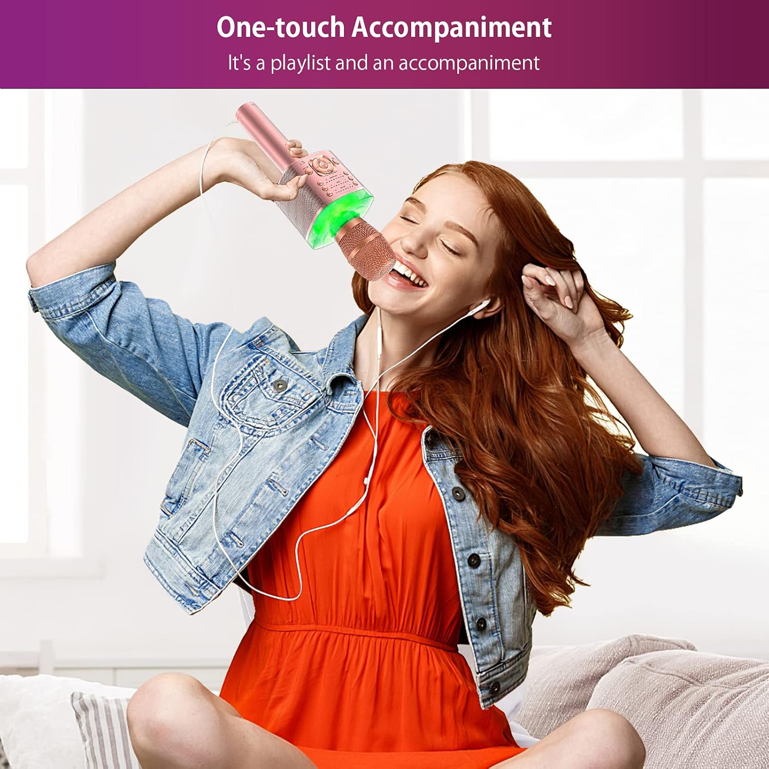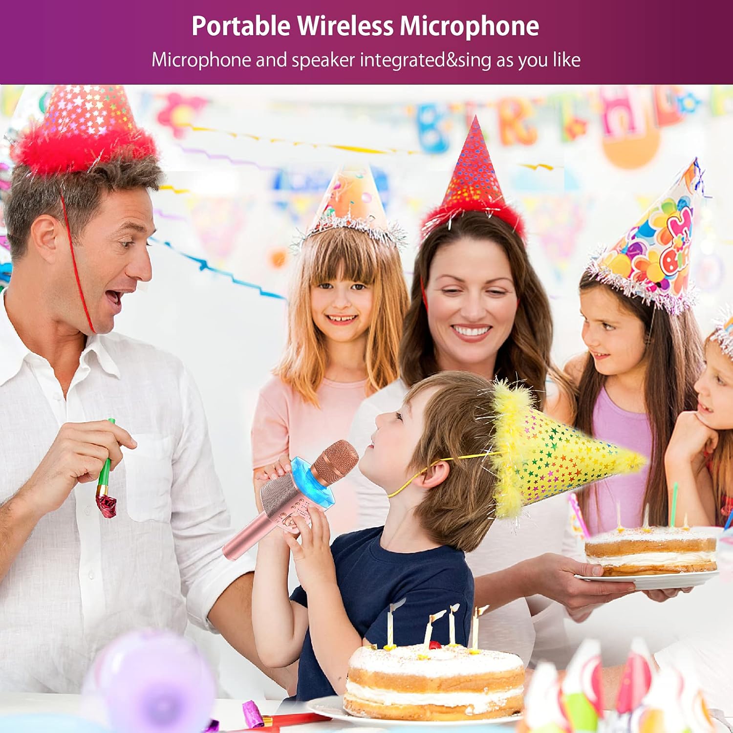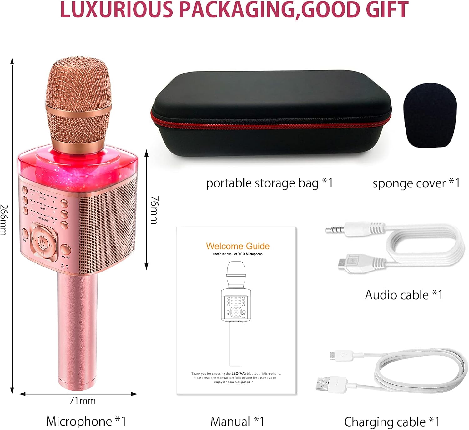 Introducing the ultimate Karaoke Microphone for kids and adults! This Handheld Wireless Bluetooth Microphone is the perfect accessory for all your singing needs. With built-in stereo speakers, reverb effects, accompaniment options, mute function, recording capabilities, LED lights, and variable sound settings, this microphone has everything you need to elevate your karaoke experience.