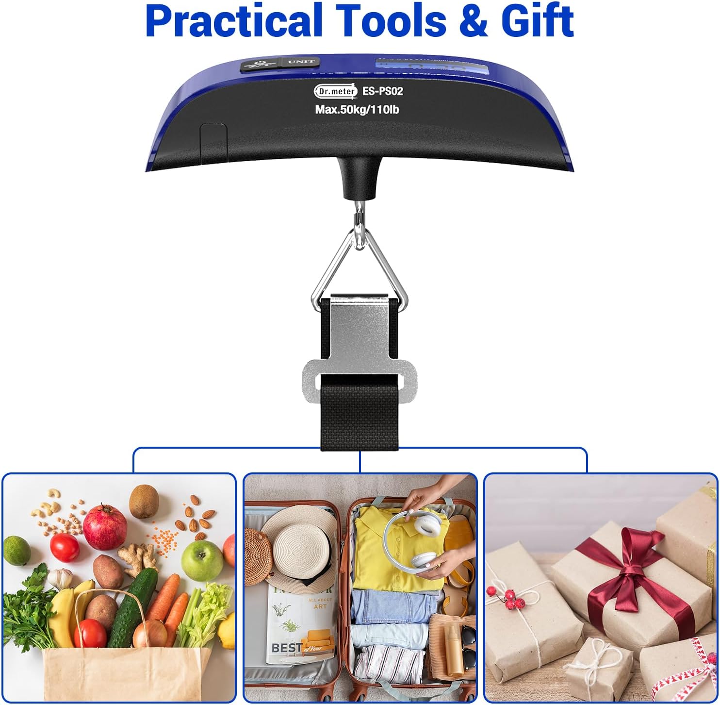 The Dr.meter Luggage Scale is a must-have for any traveler looking to avoid unexpected baggage fees at the airport. With a capacity of 110lb/50kg, this portable handheld scale allows you to easily weigh your luggage before heading to the airport.