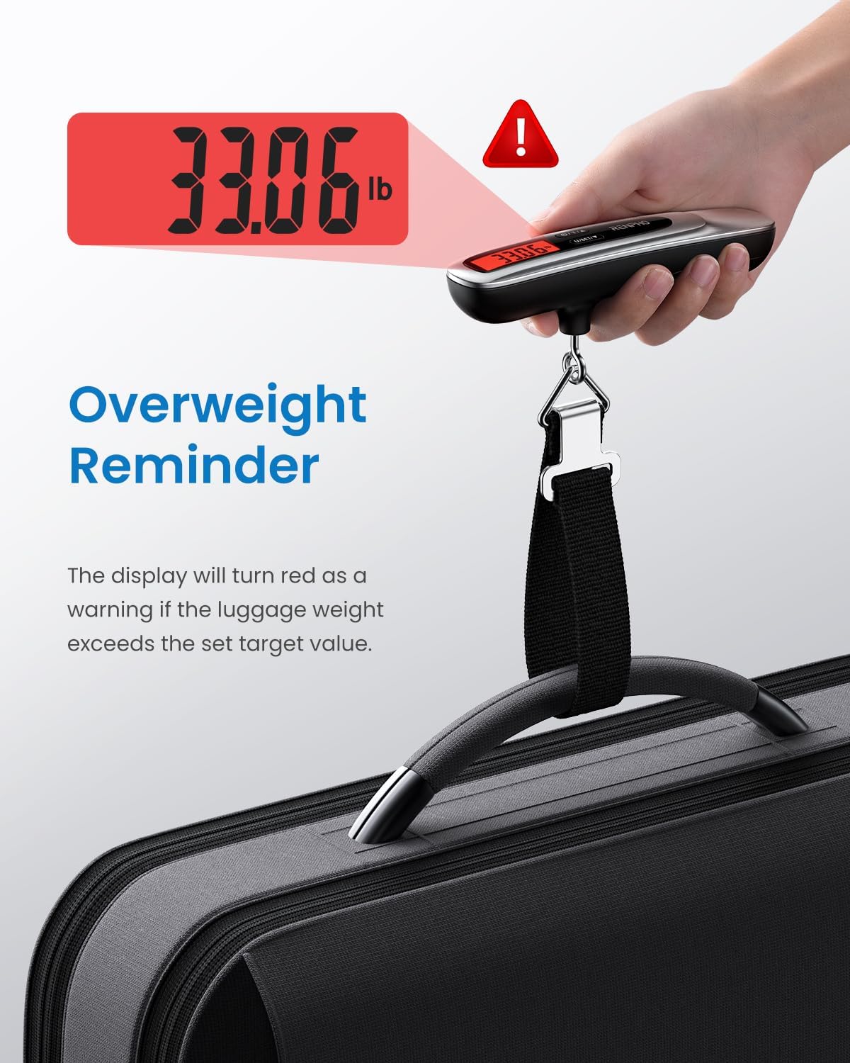 With a convenient tare function, you can easily weigh your luggage without the added weight of the suitcase. The built-in overweight reminder alerts you when your luggage exceeds the airline’s weight limit, ensuring a stress-free check-in process.