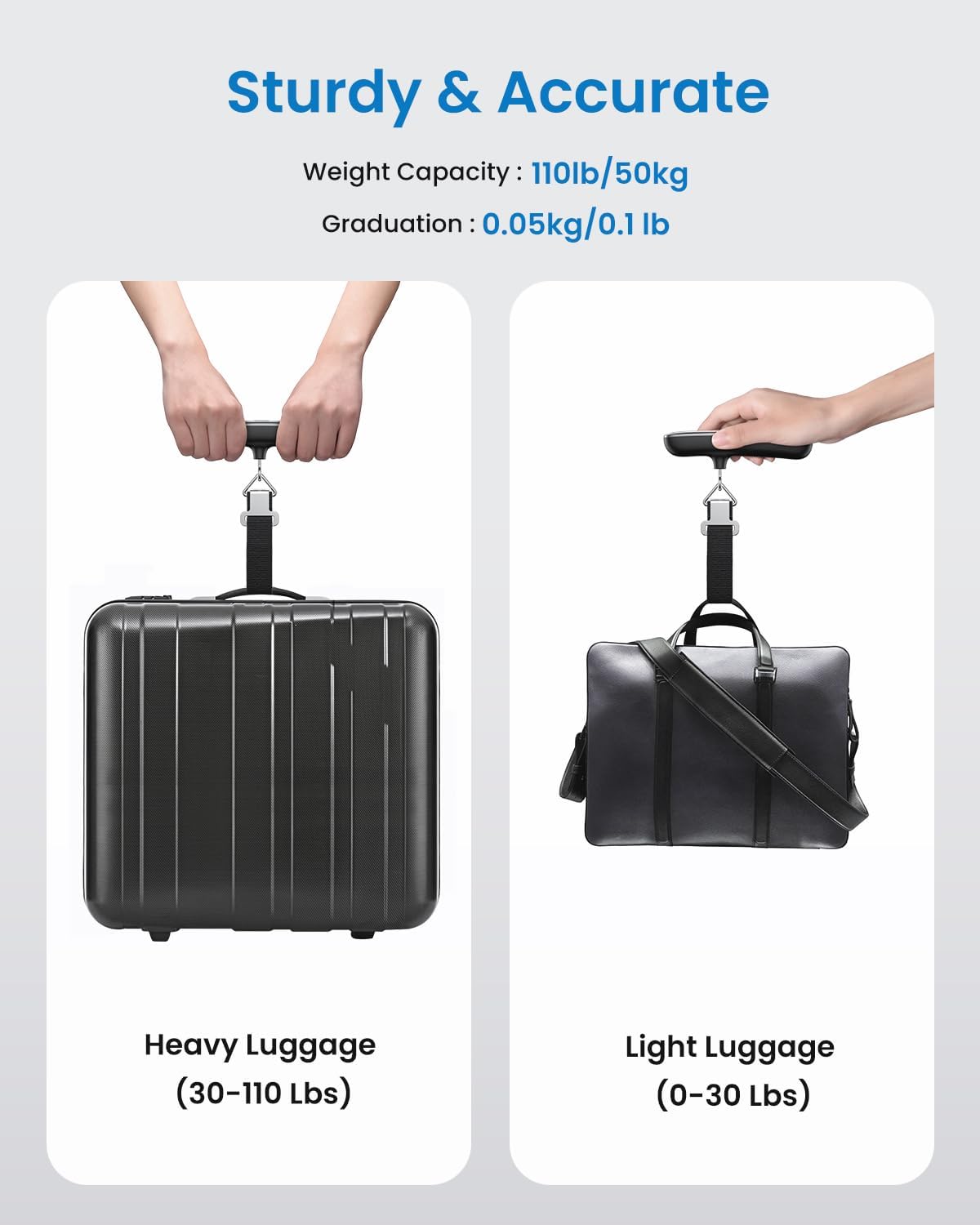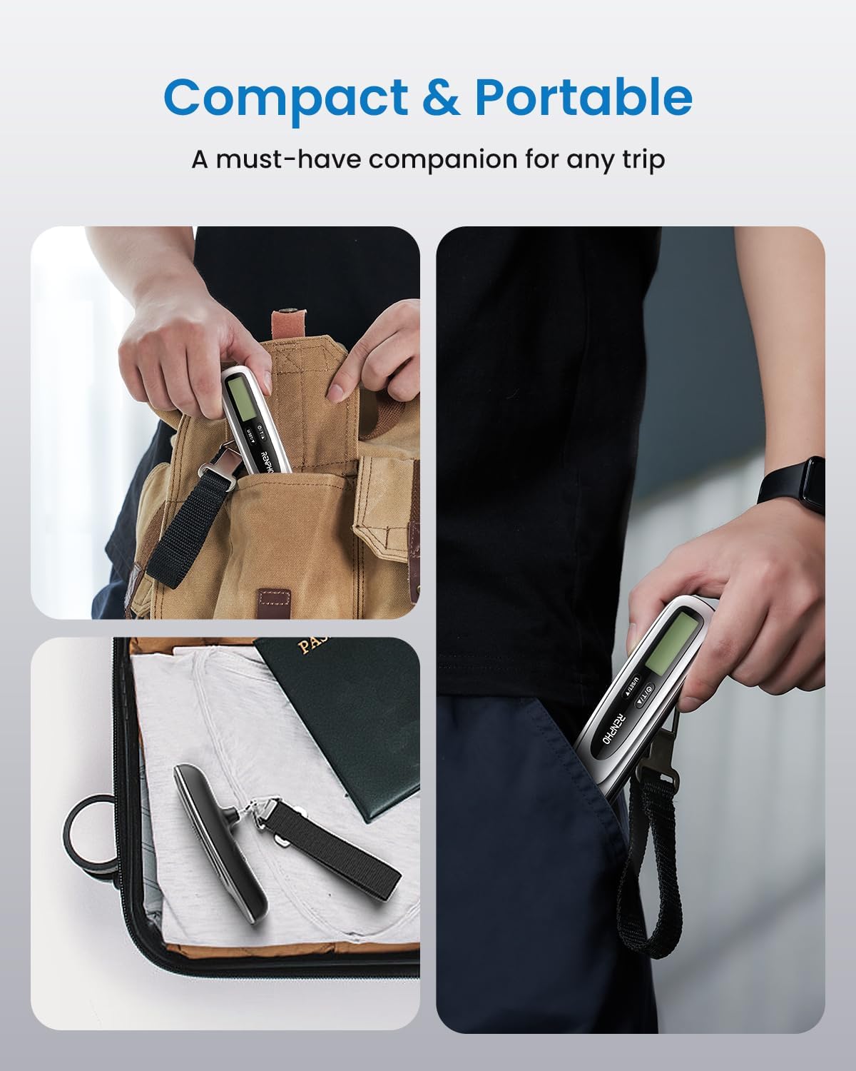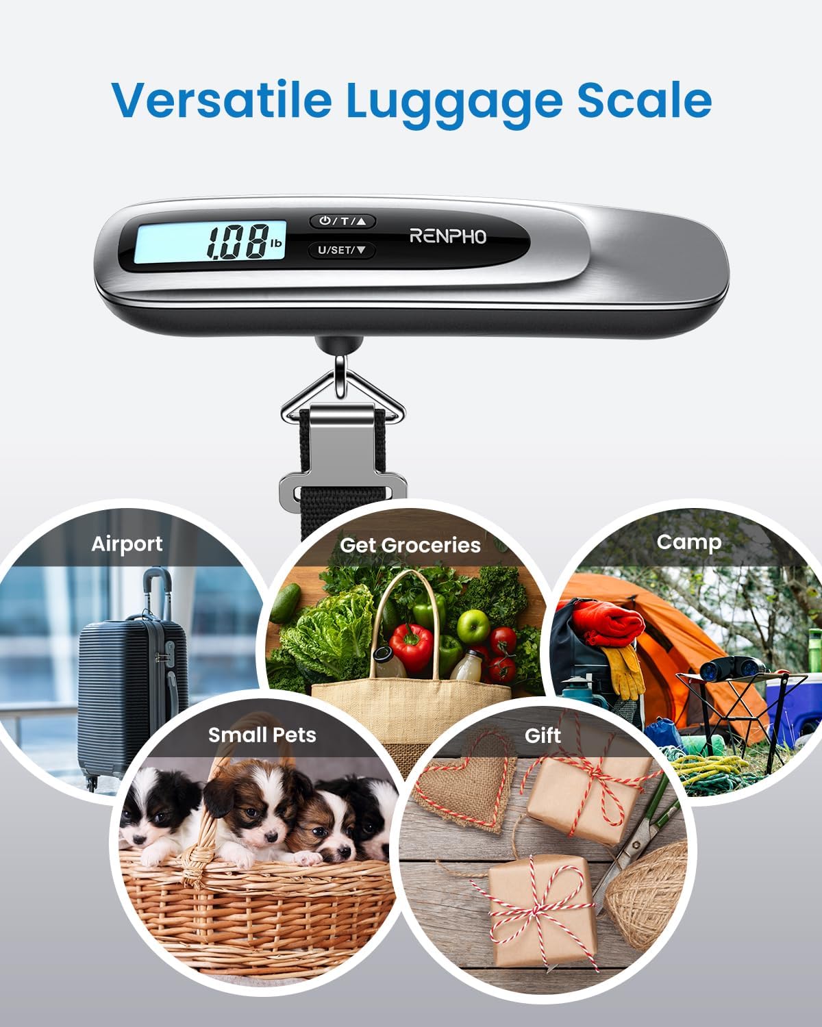 The RENPHO Luggage Scale is a must-have travel accessory for any globetrotter. This portable handheld scale is designed to accurately weigh your luggage up to 110lbs/50kg, helping you avoid costly overweight baggage fees. The backlit display makes it easy to read the weight even in dimly lit airport terminals.